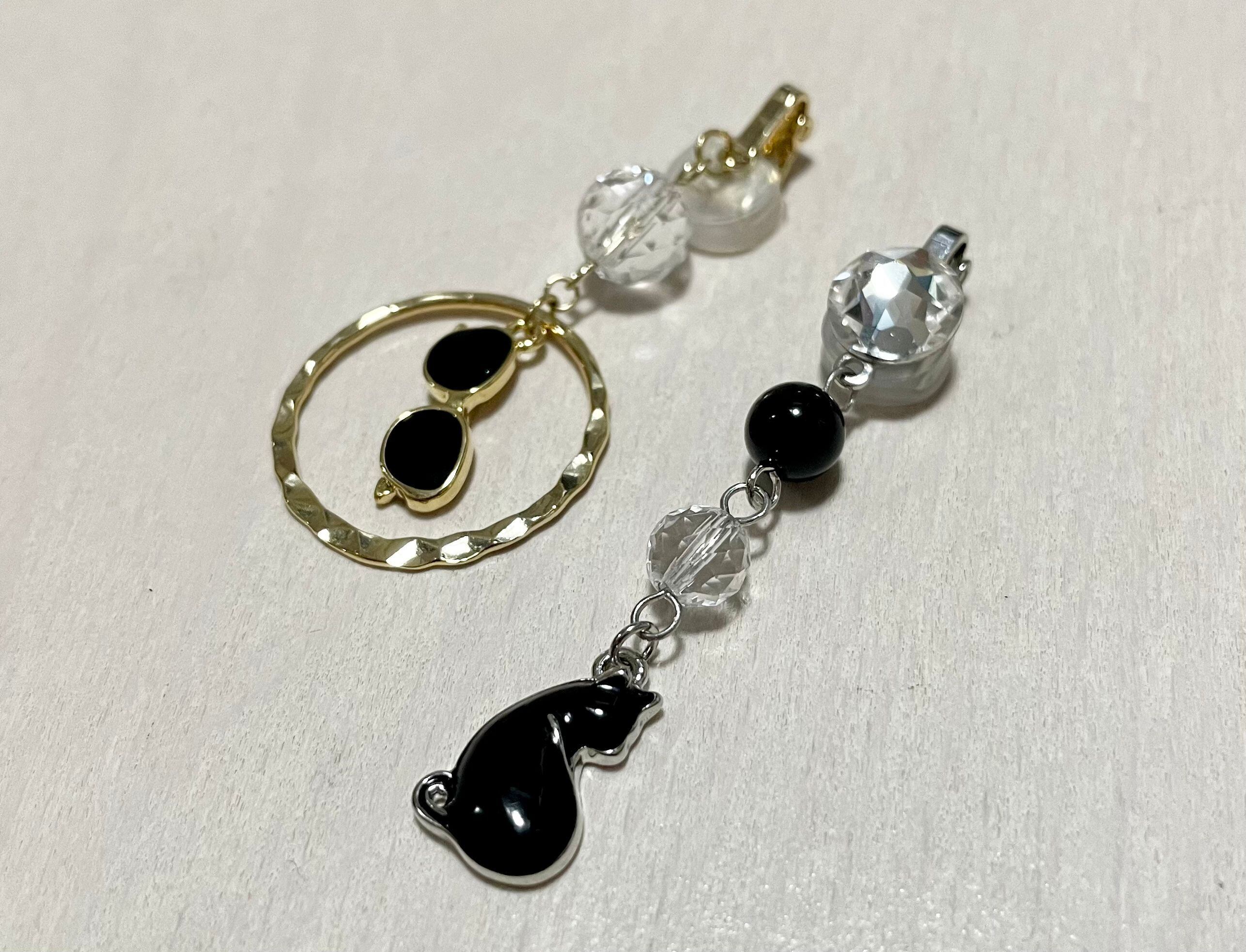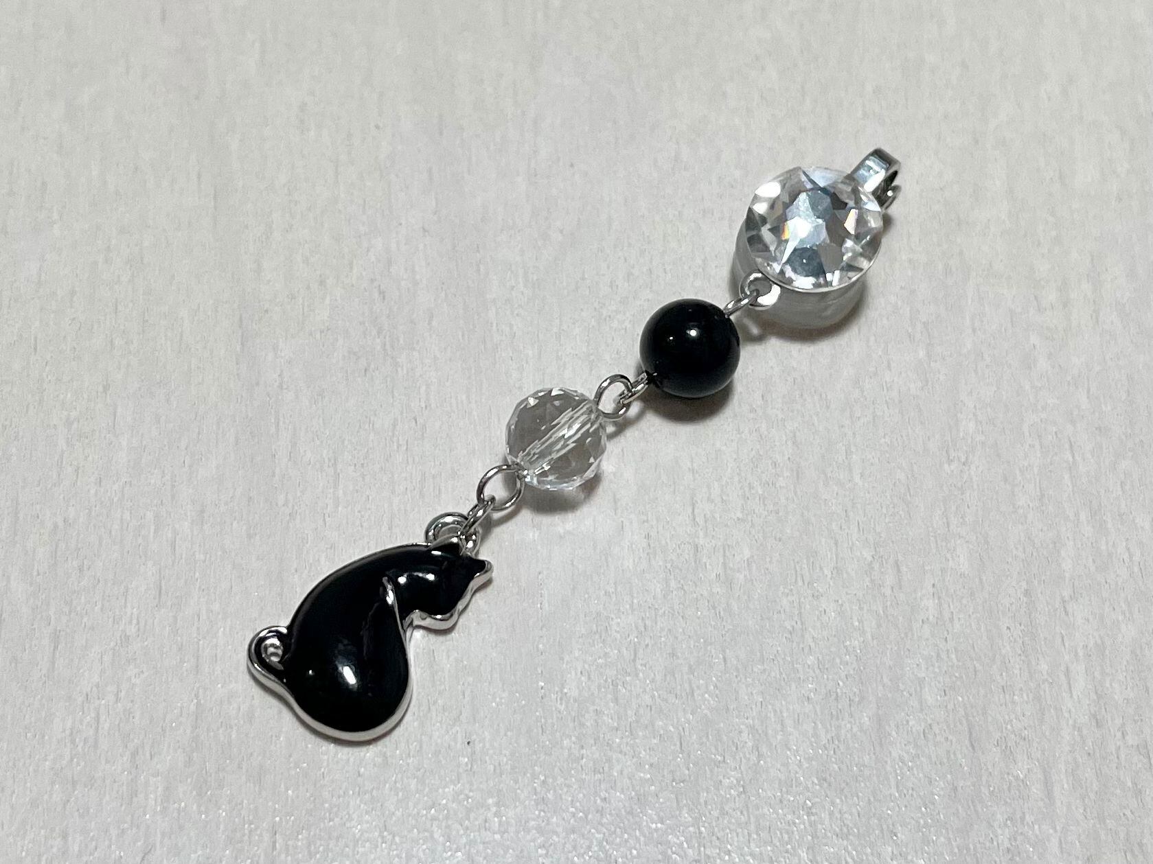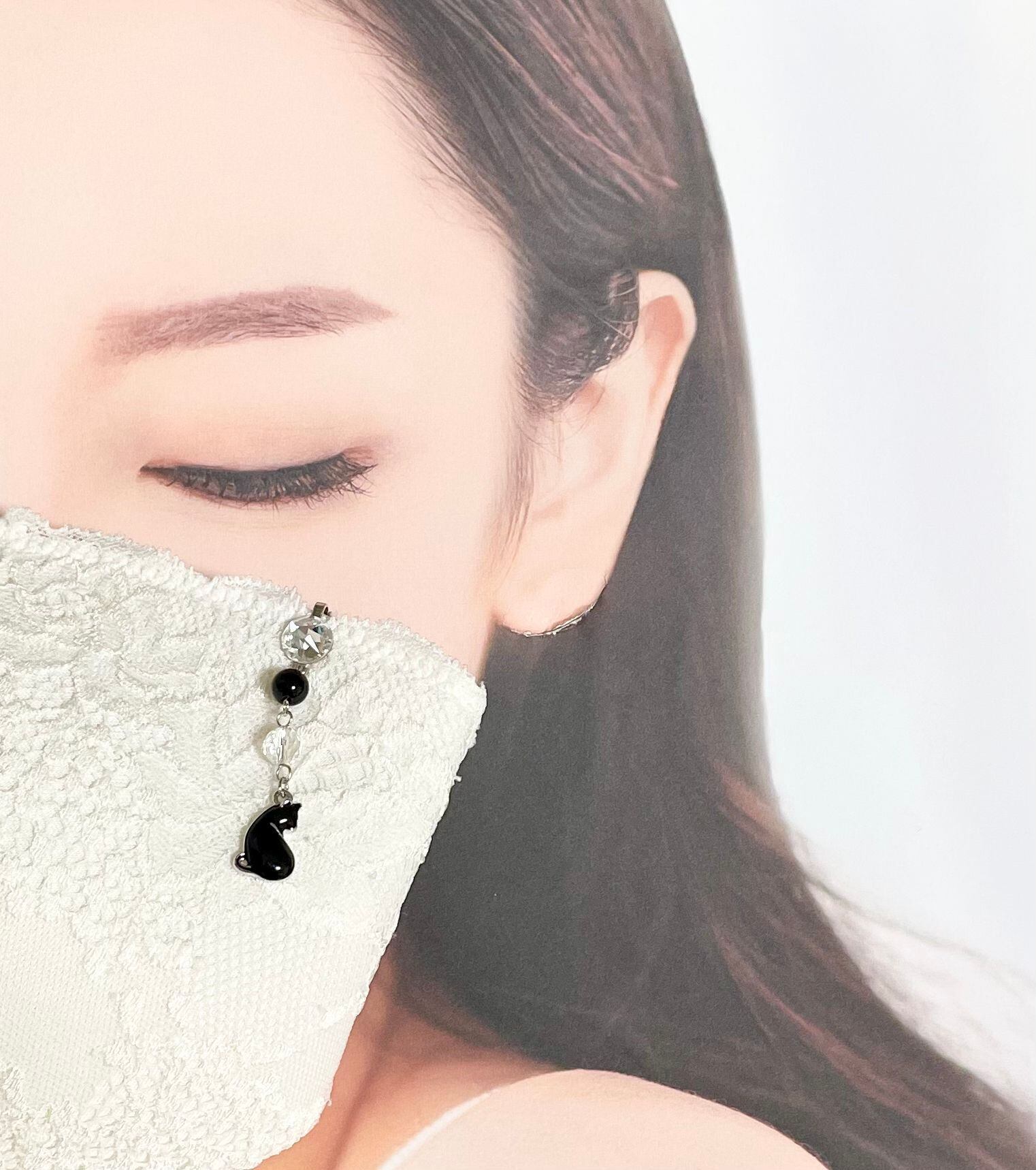 黒猫☆【開運マスクチャーム&ペンダントトップ】「オニキス&水晶」*初回チョーカー付き